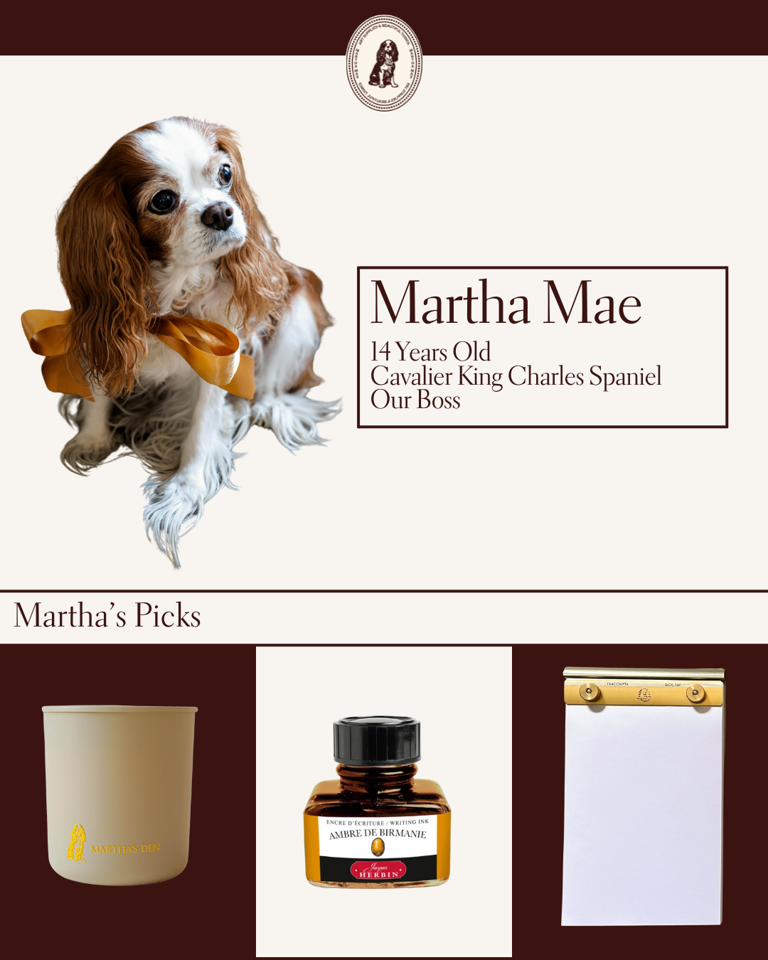 It’s nice to be important, but it’s more important to be nice. Martha – like the boss she is – went and dreamed up her own signature scent with our friends at Edgewater Candles. We’ll meet you in the library with a lighter. Martha’s den candle hits all the right notes.