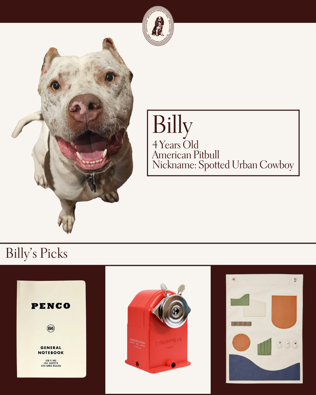 Billy likes to show up with a good attitude and a sharp pencil. The best pencil sharpening machine of all time comes in a limited-edition red corvette color. Billy is so excited it’s hard to see his tail. This beautiful Swiss feat of engineering allows you to tailor how sharp you want to make your mark. Bark up whatever tree you want to. Your voice matters. Shave what doesn’t serve you.