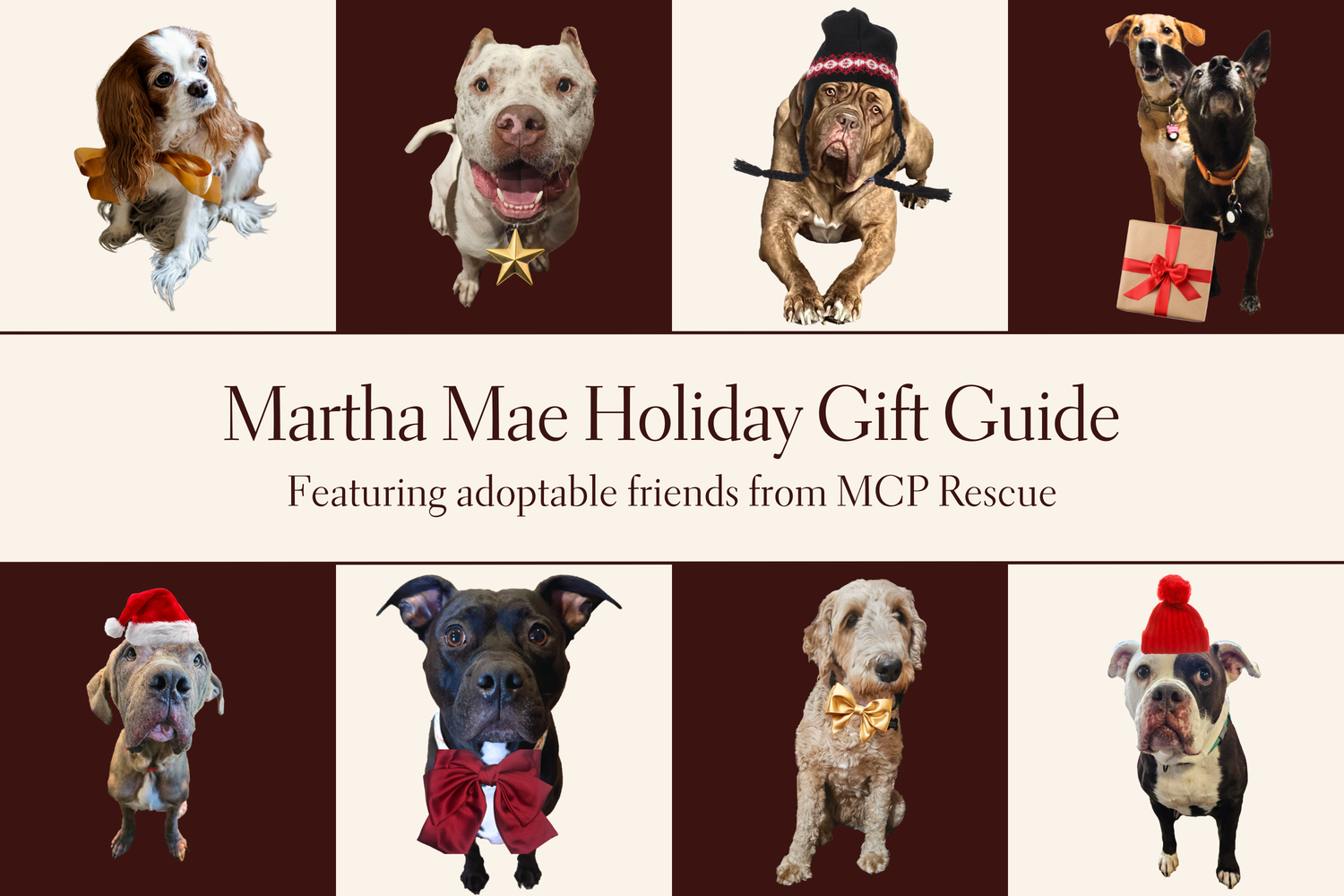 MCP is a foster-based rescue and outreach organization based in Chicago (with a chapter in LA) that typically takes in harder to place dogs. We are excited to be featuring some of their adorable and adoptable friends in our favorite (wink) gift guide, but we couldn’t invite them all to the party. Please scroll by and say hi to their delicious faces.