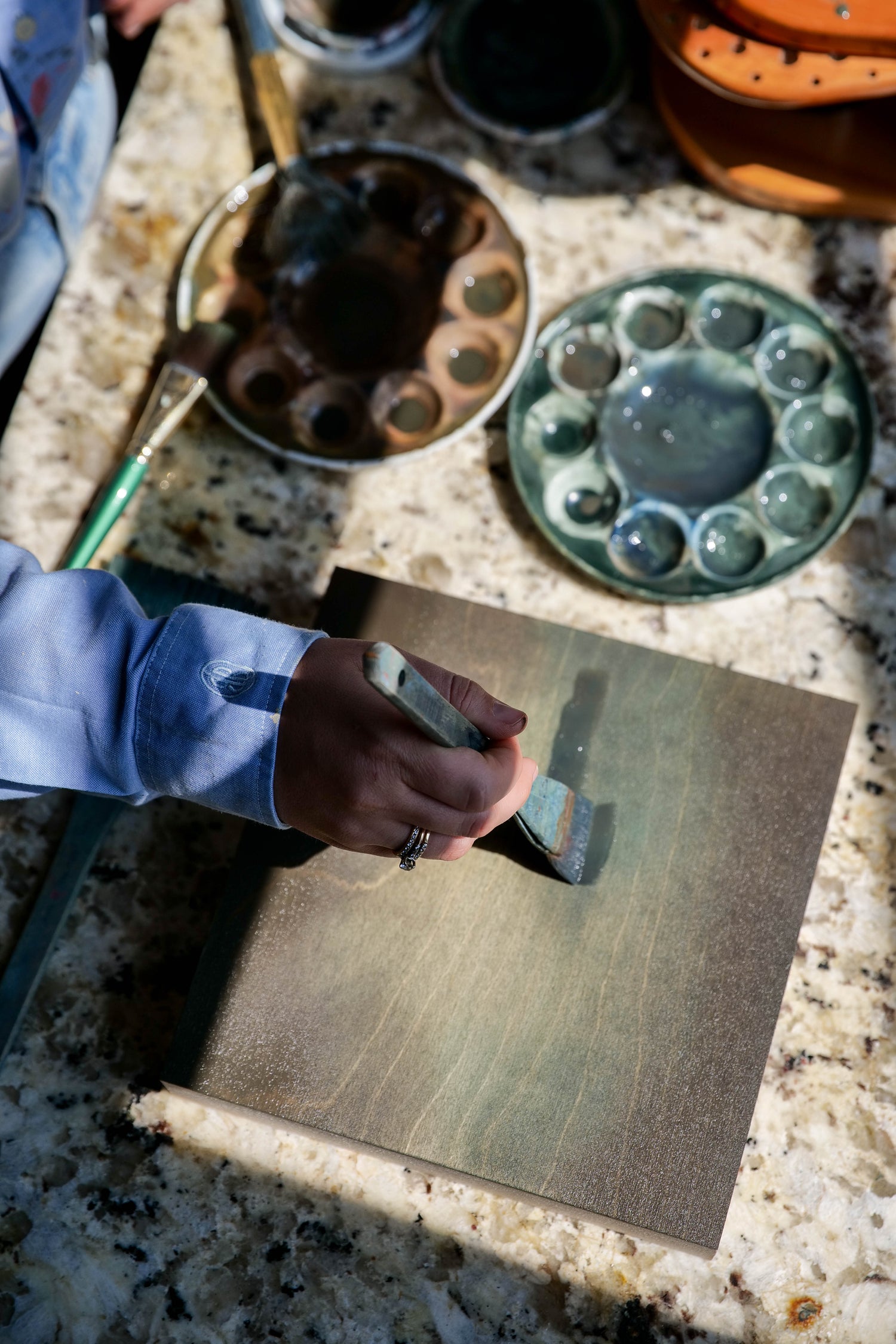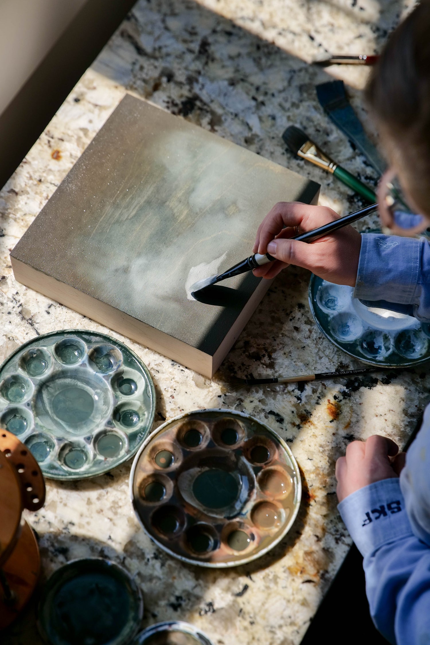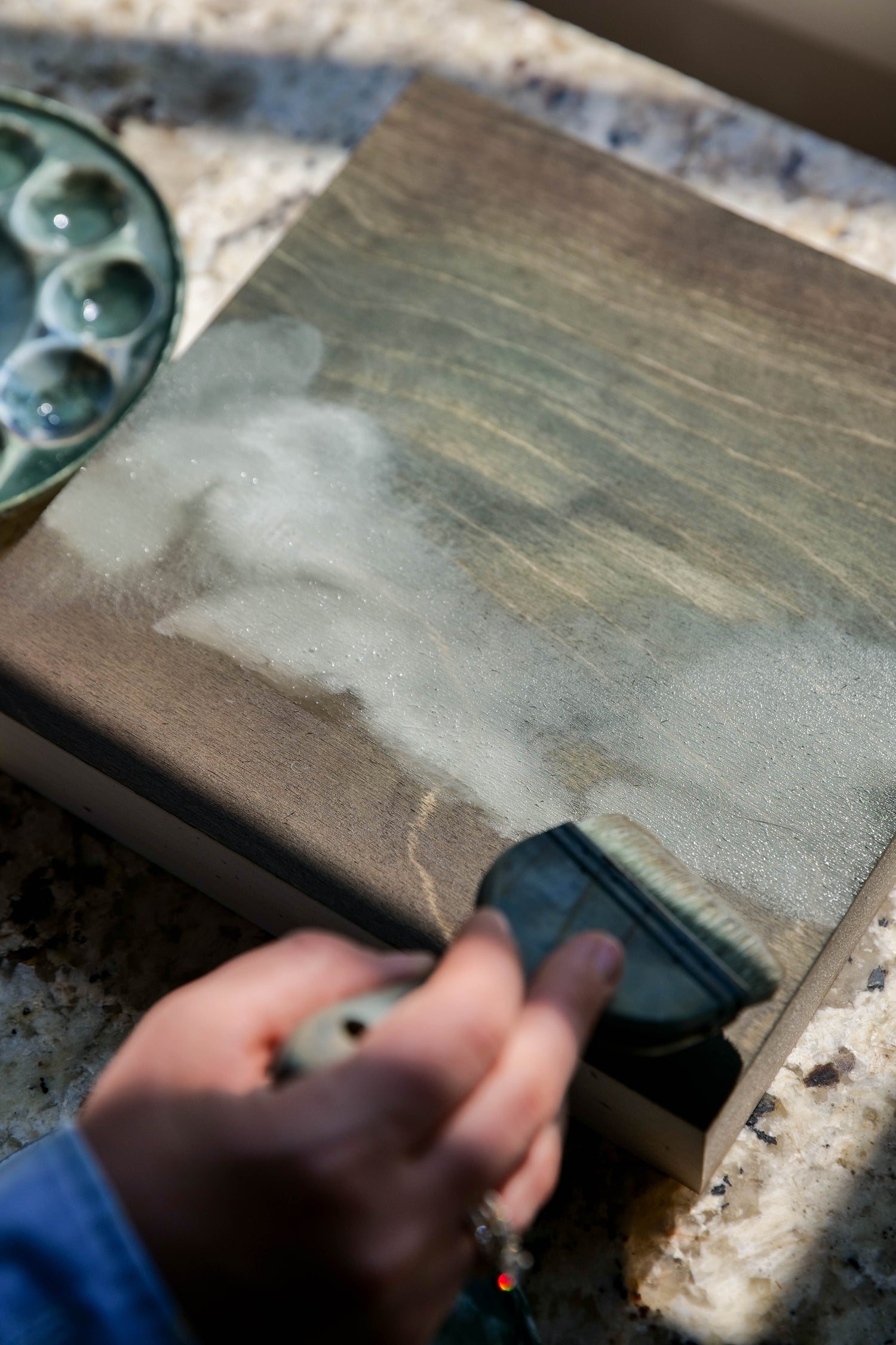 Call To Adventure II and Crossing The Threshold II are paintings inspired by The Hero’s Journey. Originally painted on raw birch panels in my Chicago studio, Crate & Barrel carefully scanned each piece to create giclee prints on FSC®-certified birch from responsibly managed forests. This is the first time that Crate & Barrel has reproduced artwork on wood panels, making this an especially exciting launch for both Crate & Barrel and myself.