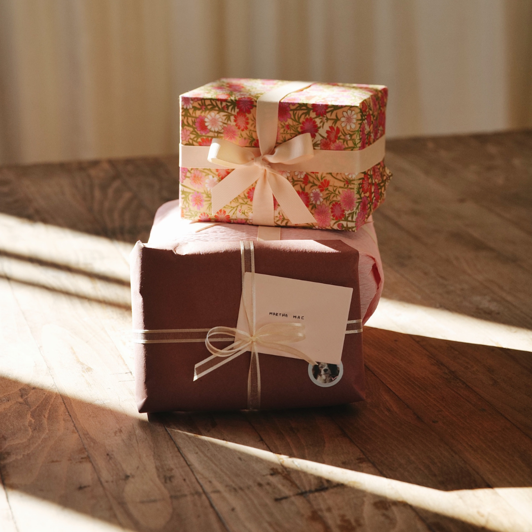 Don’t give a gift in its birthday suit! Dress it up! Pick a beautiful paper and skip the tape. It’s fun to be eco-friendly. Use what can be reused. There’s always a reason to hold onto a good box! Pretty paper can line shelves, become stationery, hang on a wall, or become a set of love letters in its next life. Let us show you how to wrap up different treasures.