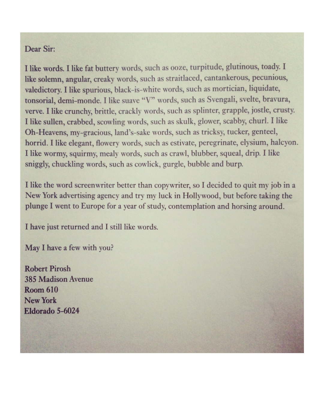 Letters can be a way to introduce yourself and play with language. Robert sent this letter across the country in 1934. In 1950 he went on to win an Oscar. Do yourself a favor a read this out loud.