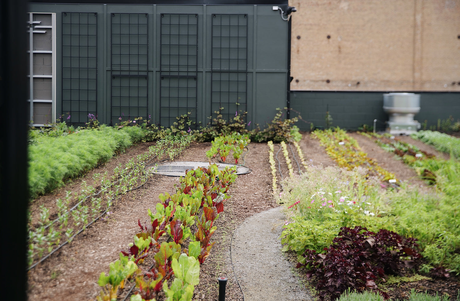 The Roof Crop HQ’s building, which is thought to have been constructed in 1928, previously operated as a manufacturing warehouse in the West Town area of Chicago. Now, it houses four dynamic entities that highlight the value of meticulous craftsmanship. These include The Roof Crop (TRC), an apothecary and design store called Third Season, Flashpoint Innovation, a food and beverage consultancy equipped with its own state-of-the-art kitchen where clients can test menus, and Maxwells Trading, a 113 seat restaurant serving seasonally inspired soul satisfying food, crisp cocktails, engaging wines, and great music. The new renovated building also features a rooftop farm and 3 spacious greenhouses.