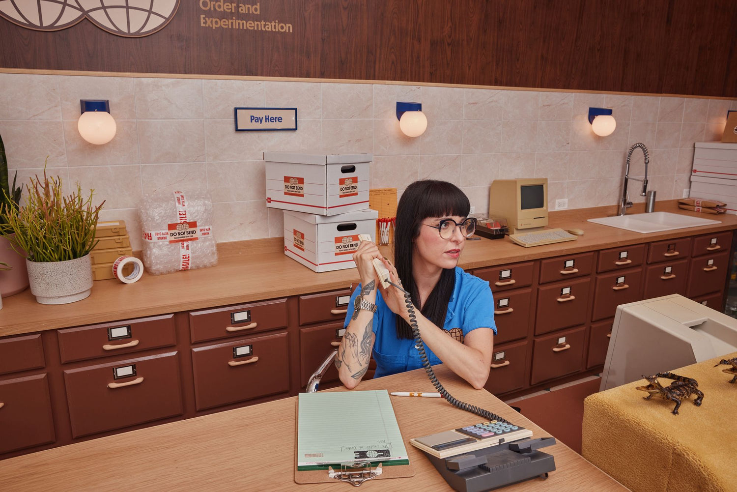 The biggest pieces of inspiration for COE came from post-Cold War era aesthetics. Brutalist architecture, decades-old post offices, even deriving inspiration from books with images from North Korea. I absolutely love the shop’s carpeted front desk, the wood contact paper on the walls, and the grocery store shelves all around. We had just come out of 2020, with this feeling that the world was going to end, and we realized that the last time the world felt like that was the Cold War. COE was not only designed after this concept, but the products we carry also embody a necessity where you’d want to have them at the end of the world.