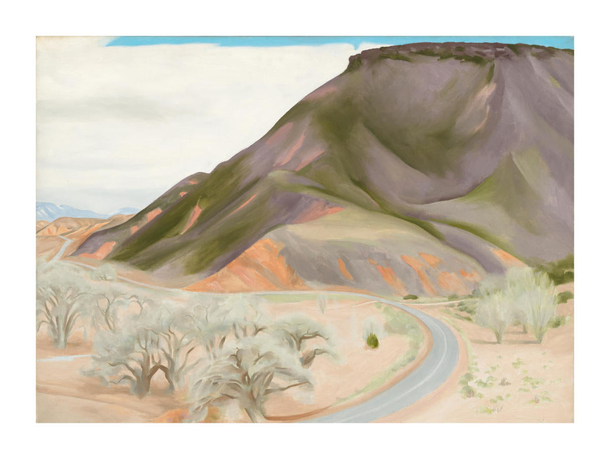As we developed the color scheme of this palette, we referenced many of O’Keeffe’s New Mexico paintings, like Road to Pedernal, Red and Yellow Cliffs, Pedernal with Red Hills, and Mesa and Road East.