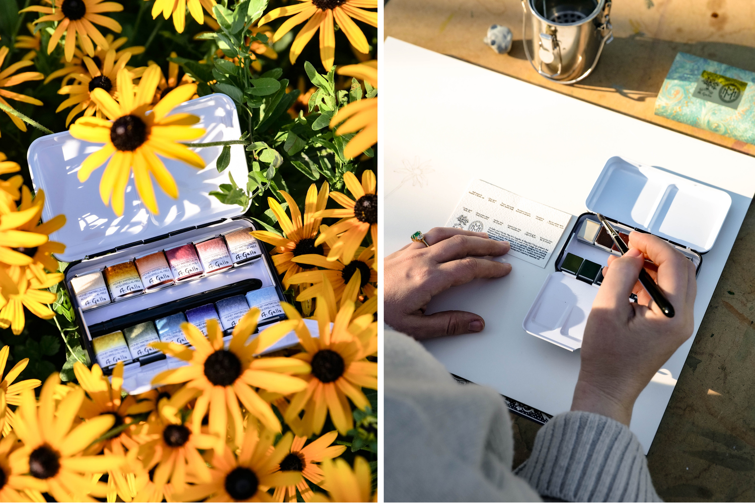 Alina draws inspiration from the rich history of pigments used by artists across cultures and cross-cultural manuscript painting techniques. A. Gallo products reflect her dedication to excellence, sustainability, and cultural heritage. Her team believes in the power of craftsmanship and the unique quality that comes from hand making paint. Their commitment to quality and tradition ensures that each of their watercolor sets is not just a tool for painting, but a piece of art in itself.Â