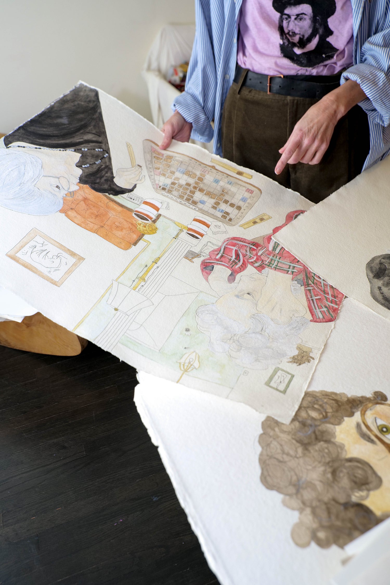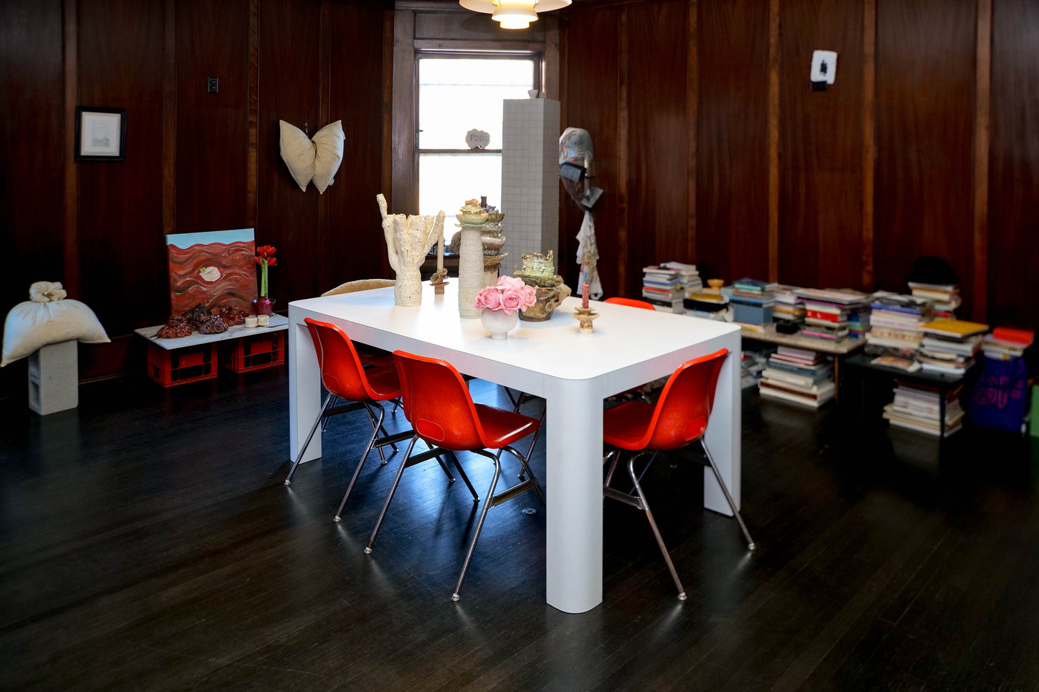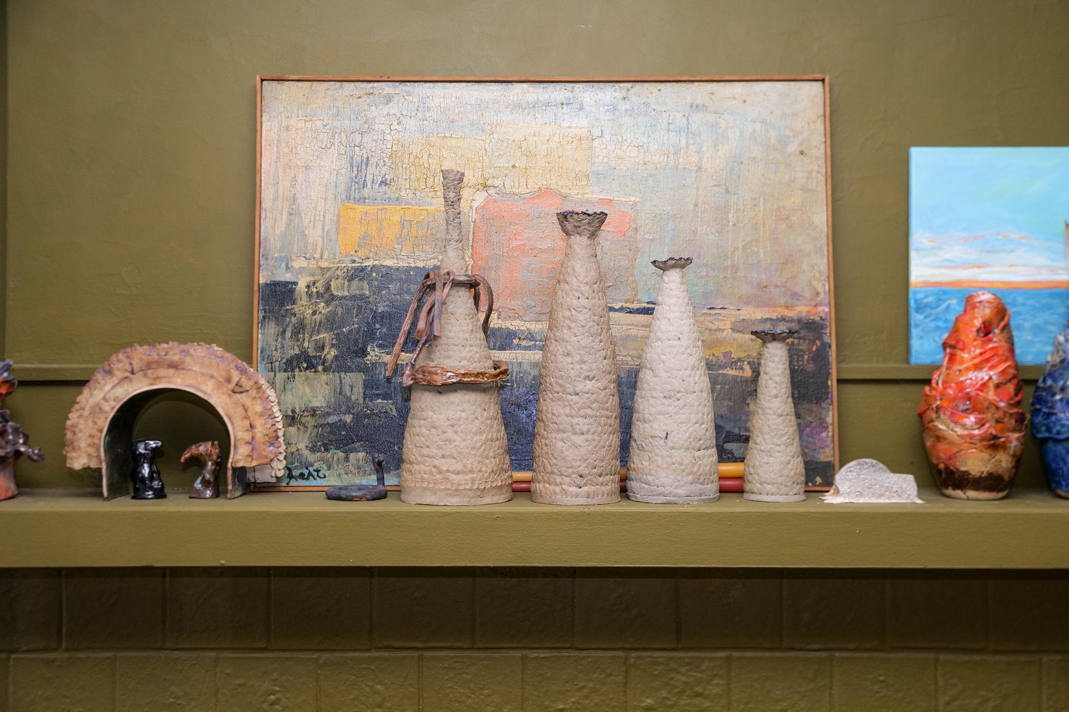 Each corner of Jennefer's space is filled with her living history. Pieces she has made, artwork from her children, ephemera she has collected throughout her time in the fashion and art worlds. The energy of every item is present. Stories flow. Sculptures speak.