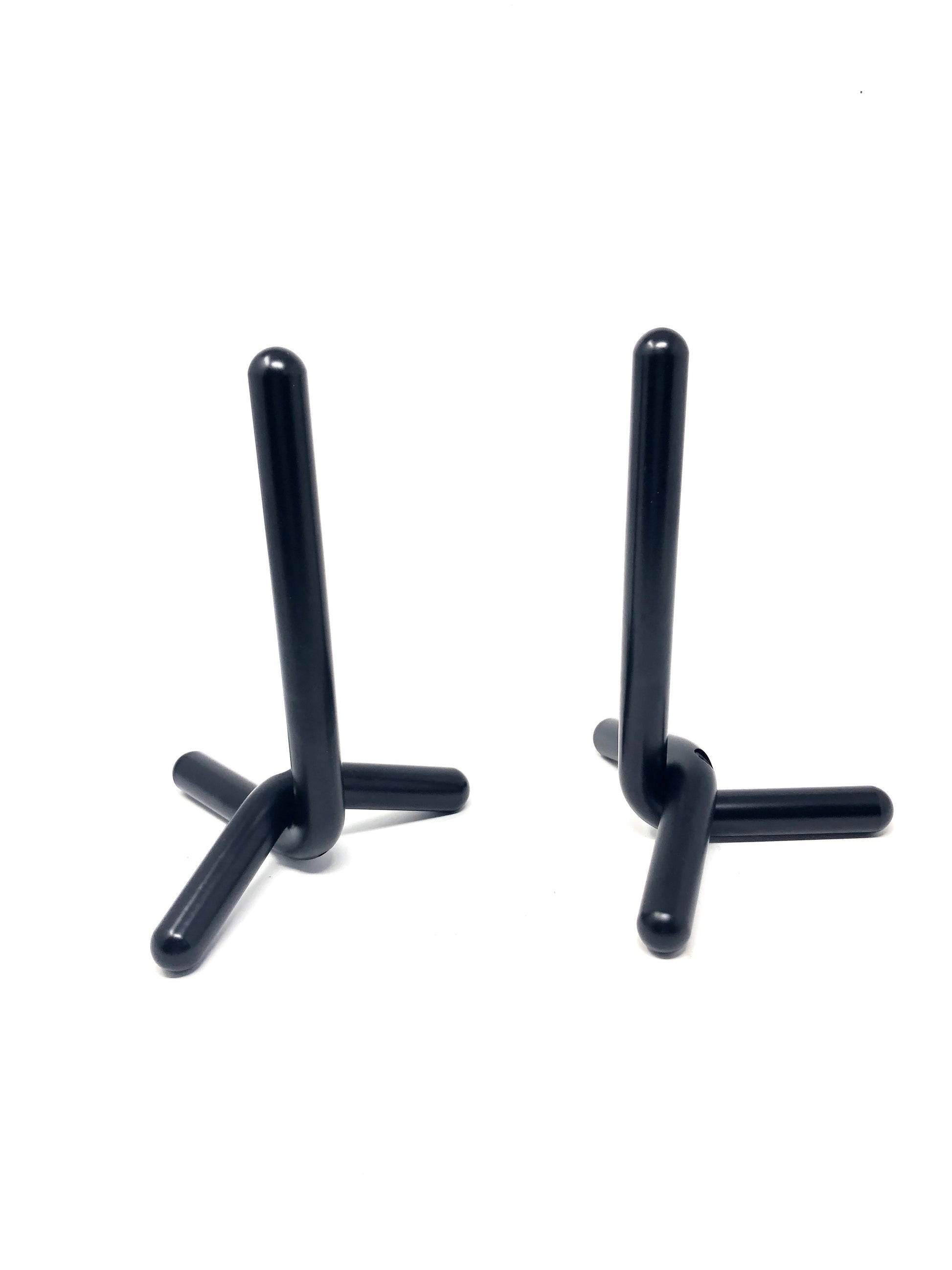A clean, architectural solution for keeping your prized volumes upright and organized. The Cal Bookend is comprised of two carbon steel rods with a black powder coating, which elegantly bend across each other and lock into place with a single bolt. Designed by Revision for Craighill, this pair of two bookends features rubber feet to prevent sliding.