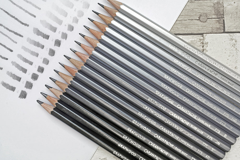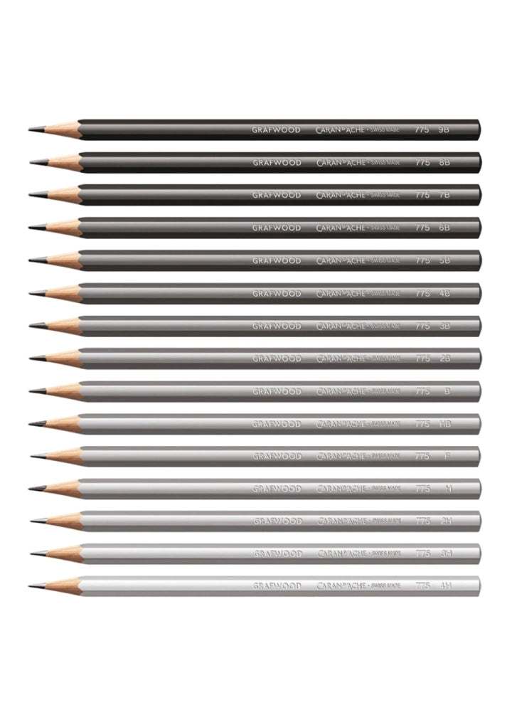 A smooth and creamy graphite. Degrees will vary in softness, 9B being the softest, progressively getting harder until 4H. The grafwood pencil is the most premium pencil that Caran d'Ache offers.