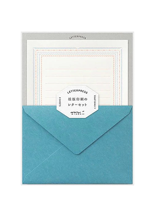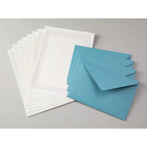 This beautiful Japanese stationery set from Midori is made by hand using a traditional letterpress technique. Included are eight sheets of textured writing paper with an embossed frame around a lined center with four envelopes to match.