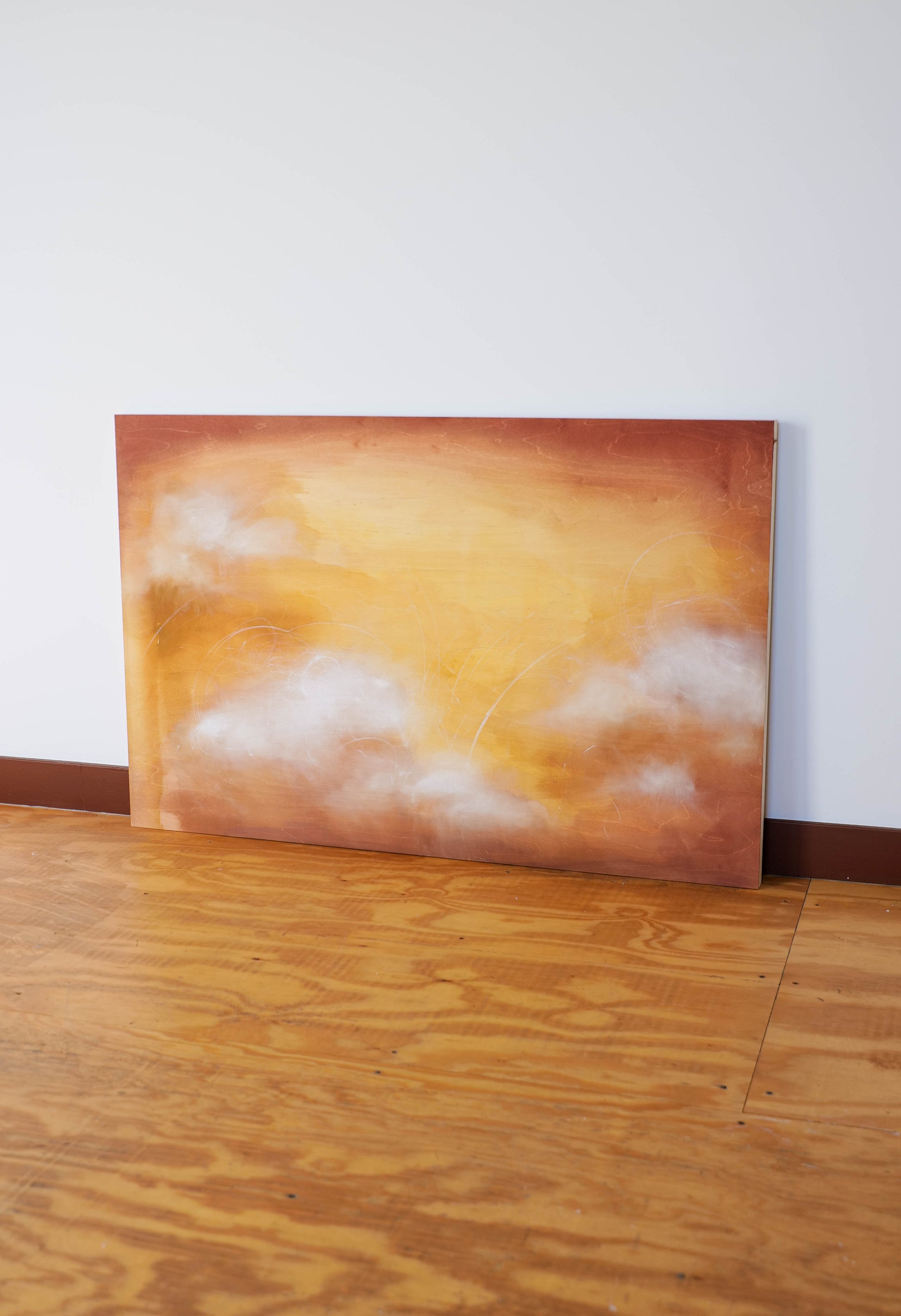 “In my art practice, I strive for the experience of being fully present, where intuition and emotion guide my creative process without conscious thought. My work revolves around the theme of atmosphere, drawing inspiration from the ever-changing and dramatic forces of nature, such as clouds that appear and disappear seemingly out of nothingness.”