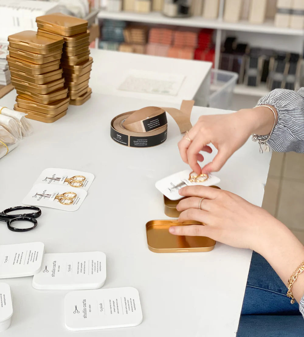 In a small street in Boston, tucked away among other shops, sits Studio Carta. This design studio imports a unique line of products from Italy. Begun in 2004 by Angela Liguori. A native of Rome, Angela grew up in the shadow of Saint Peter’s Basilica with her mother’s dressmaking tools all around her. Now Carta specializes in desk tools, scissors, 100% cotton ribbon and other small notions.