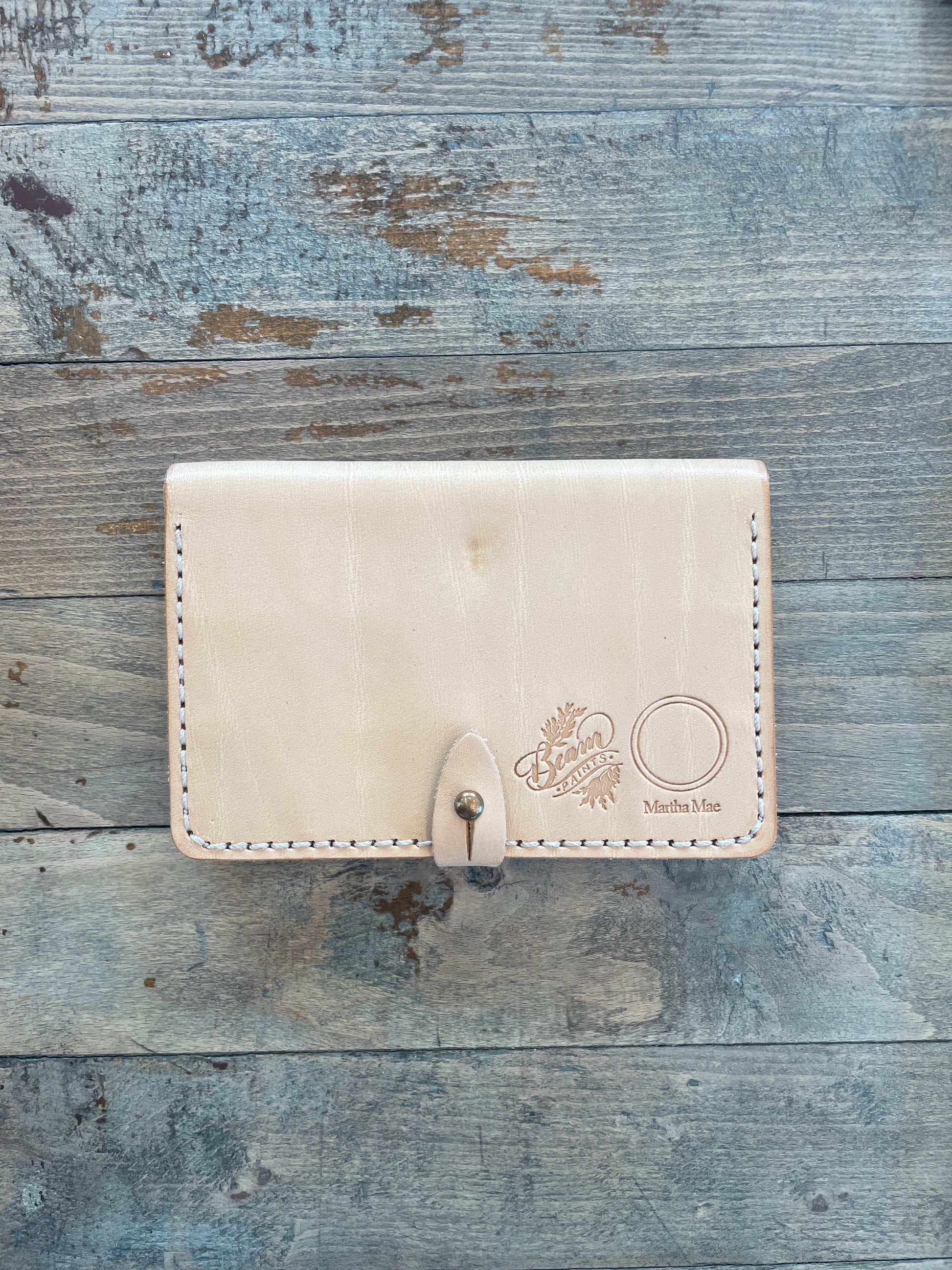 A handmade leather natural watercolor palette by Martha Mae and Beam Paints made in collaboration with Tundra Leather.