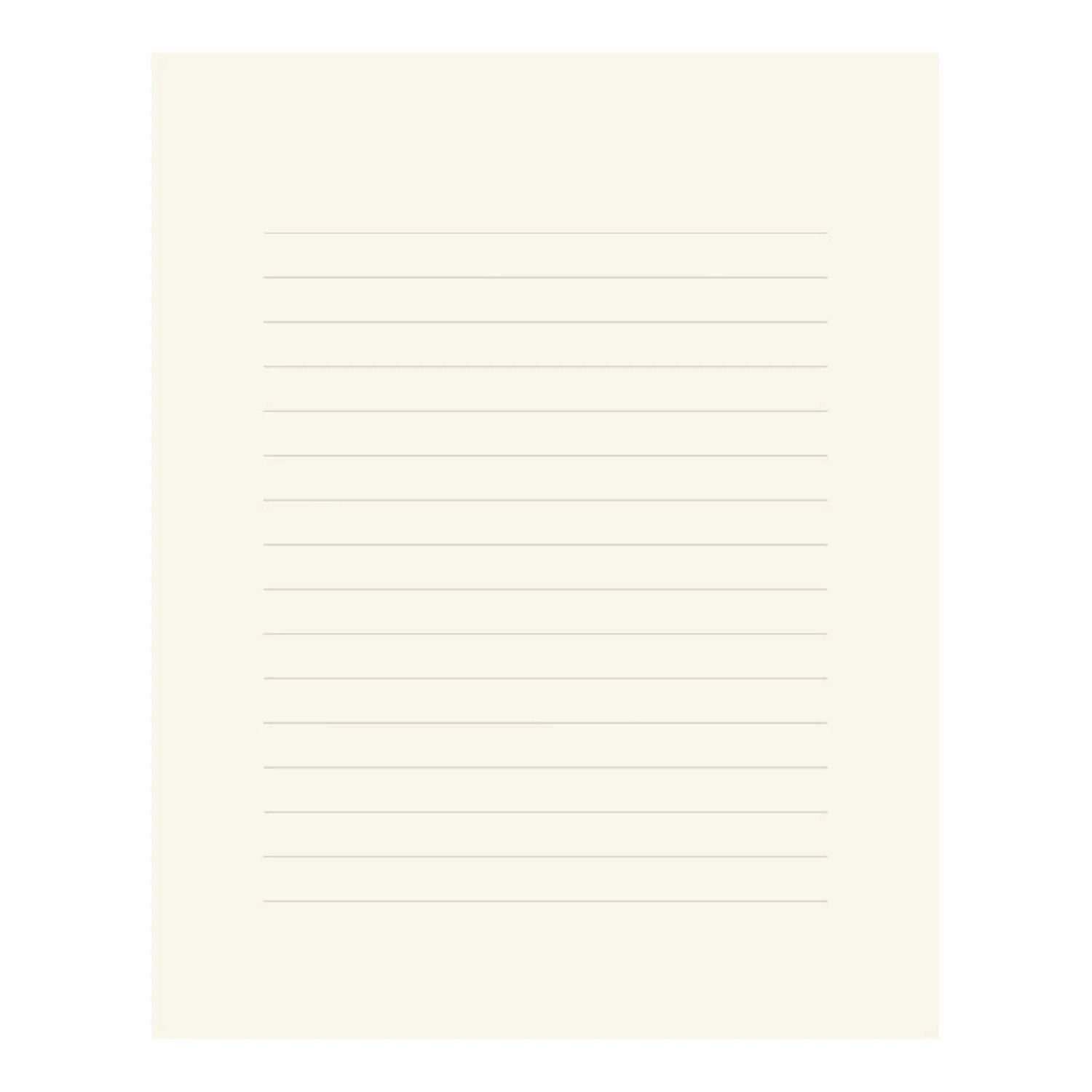 Midori’s thoughtfully minimal letter pad is carefully crafted to both create a superbly comfortable writing experience and provide a sophisticated aesthetic. The use of blank space on the letter pad heightens the effect of the paper’s pleasing cotton texture- a softness that feels like it is infused with air. The letter pad is designed in Midori’s own unique size, measuring to 8.3” x 6.6,” believed by Midori to be the perfect size to provide comfort when writing letters. Midori selected the size by calculating the average handwriting size used by Japanese people when writing letters, and ruled the lines at just the right length for natural line breaks. The lines are spaced at 9.5mm- wide enough for you to write comfortably and with ease, with plenty of blank space around the text to make each finished letter look unique and beautiful. The lines themselves are a refined light grey that will provide a guide for your writing without being too obtrusive.