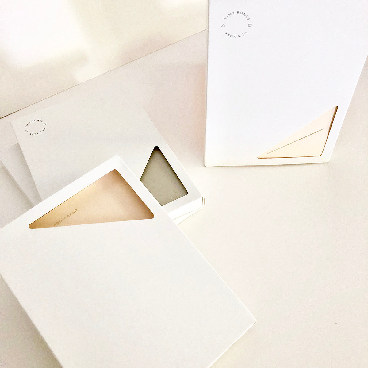 Tiny Bones Press has been finding it's own place within the printed matter industry. Combining a love for writing notes and minimal design, they create stationery that encourages connecting while being beautiful in feel, eco-friendly and delicately designed. Visually feeling like a small print, they are a little piece of art to use everyday. All notecards are hand printed (either letterpressed or foiled) one by one on vintage presses in their studio in New York.