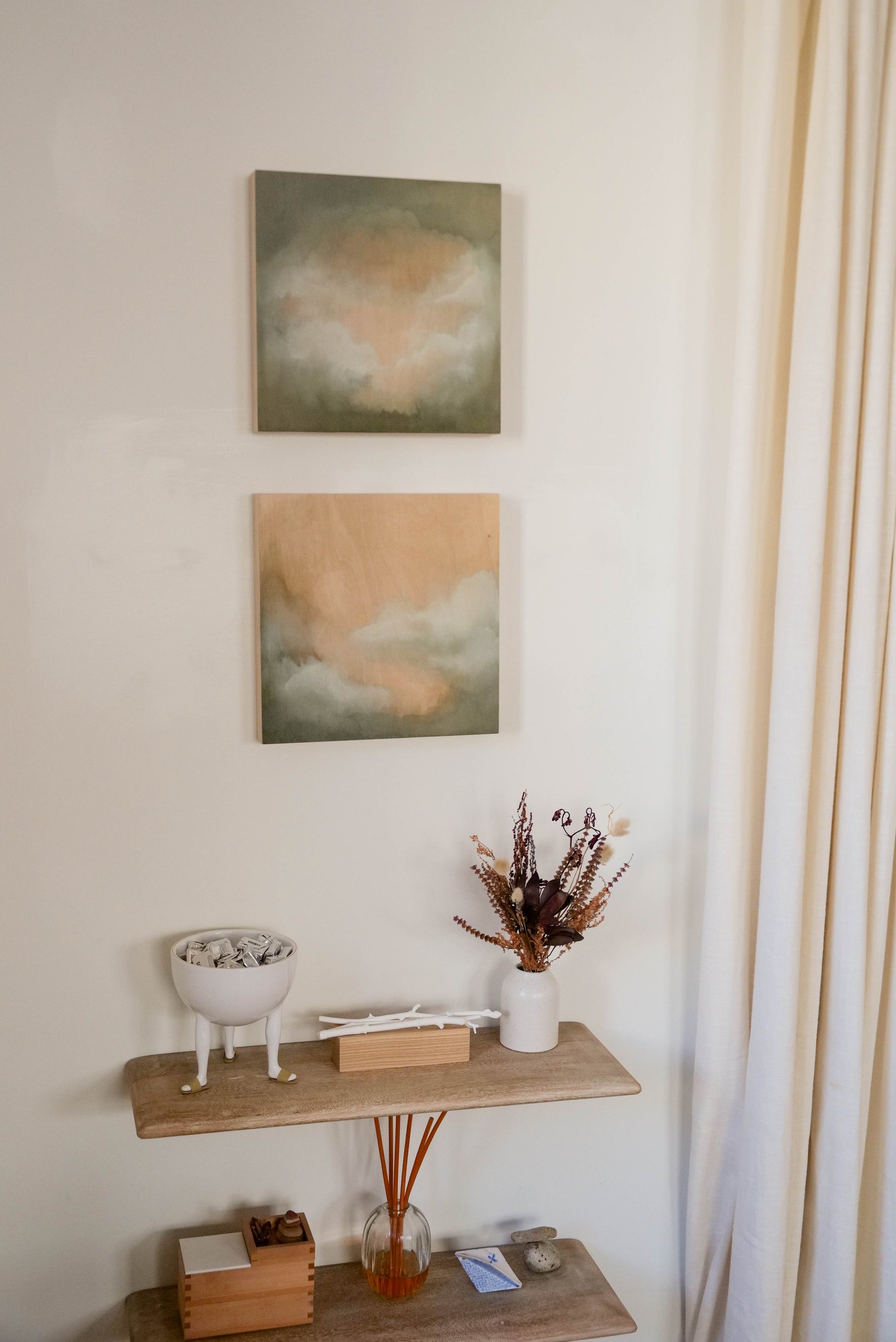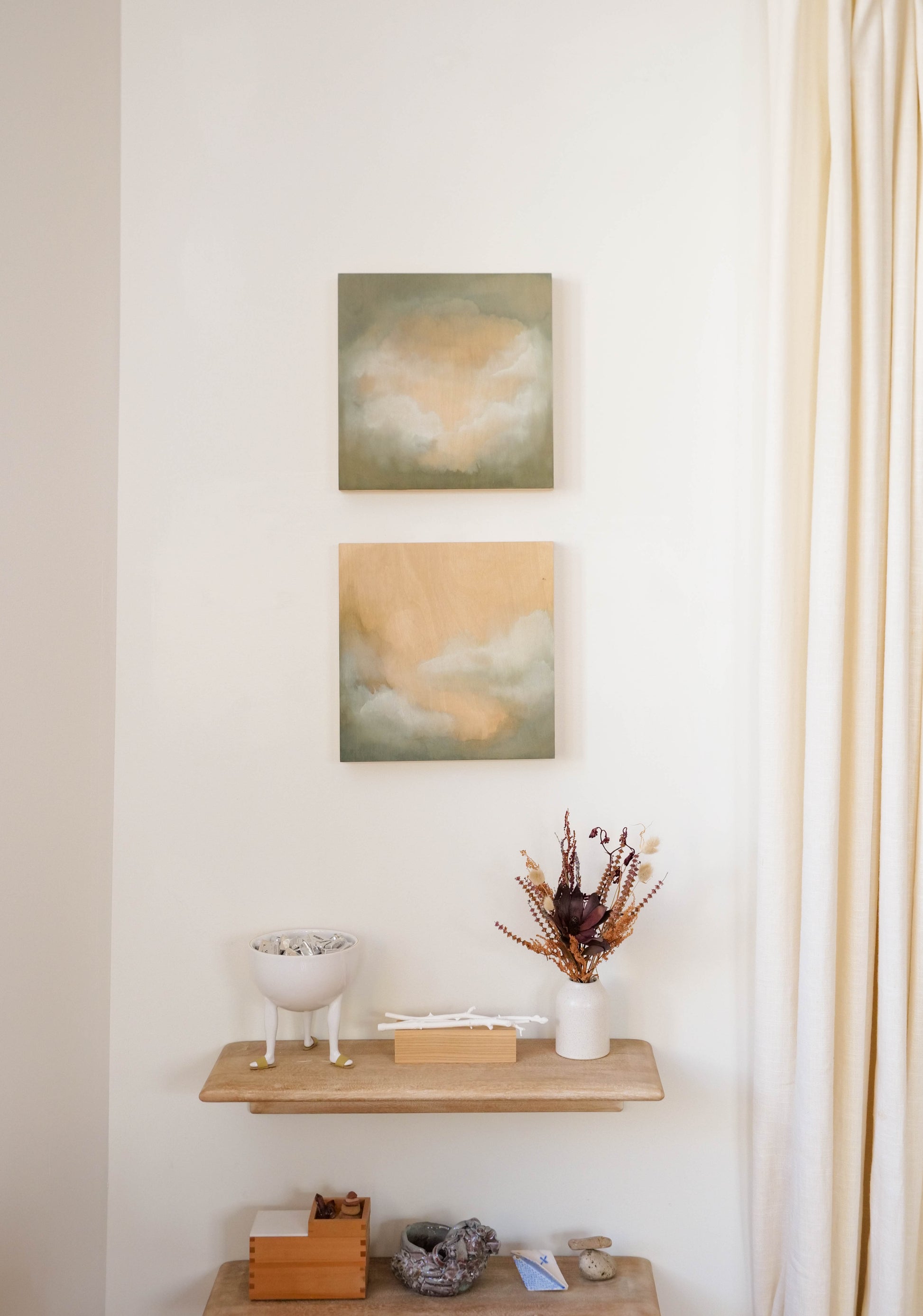 “In my art practice, I strive for the experience of being fully present, where intuition and emotion guide my creative process without conscious thought. My work revolves around the theme of atmosphere, drawing inspiration from the ever-changing and dramatic forces of nature, such as clouds that appear and disappear seemingly out of nothingness.”