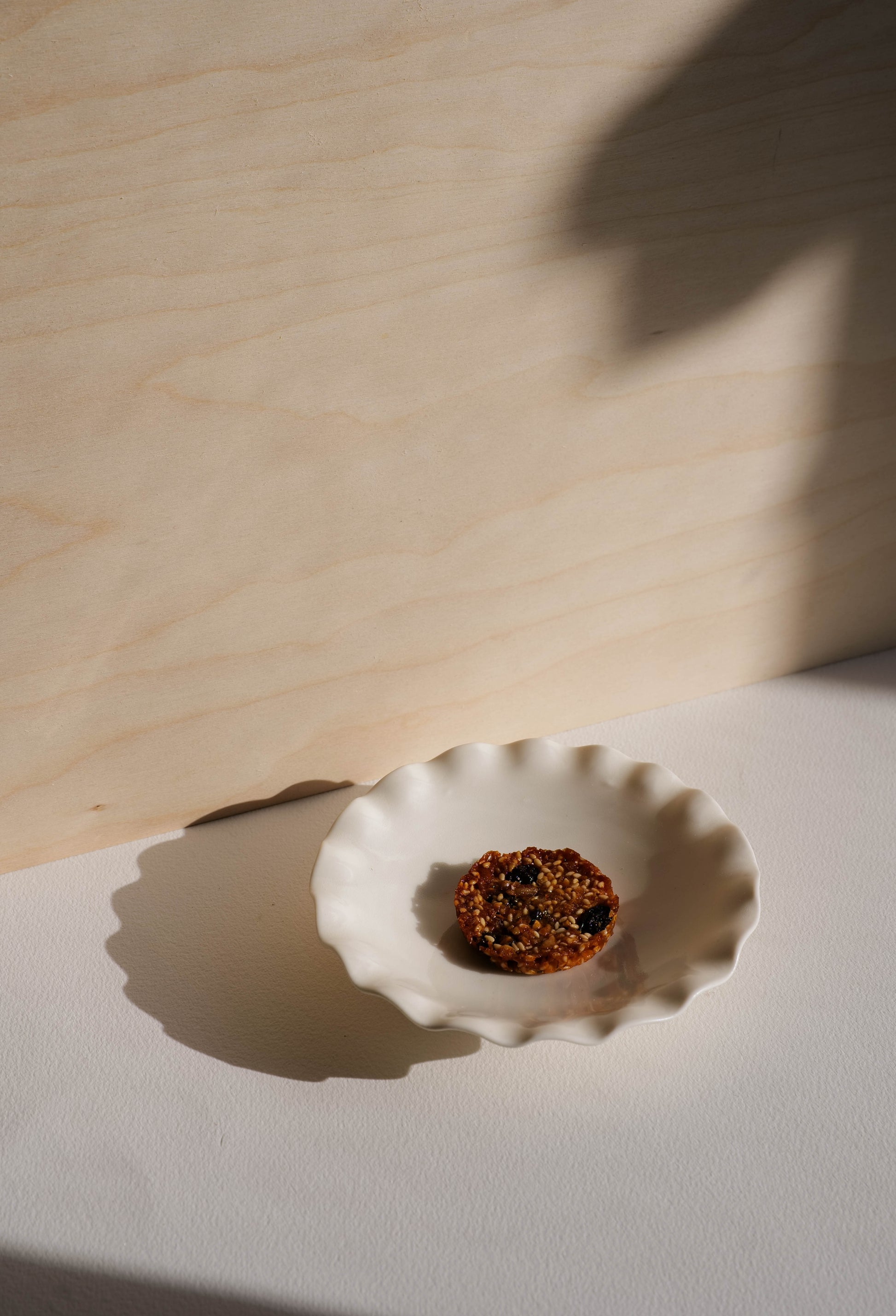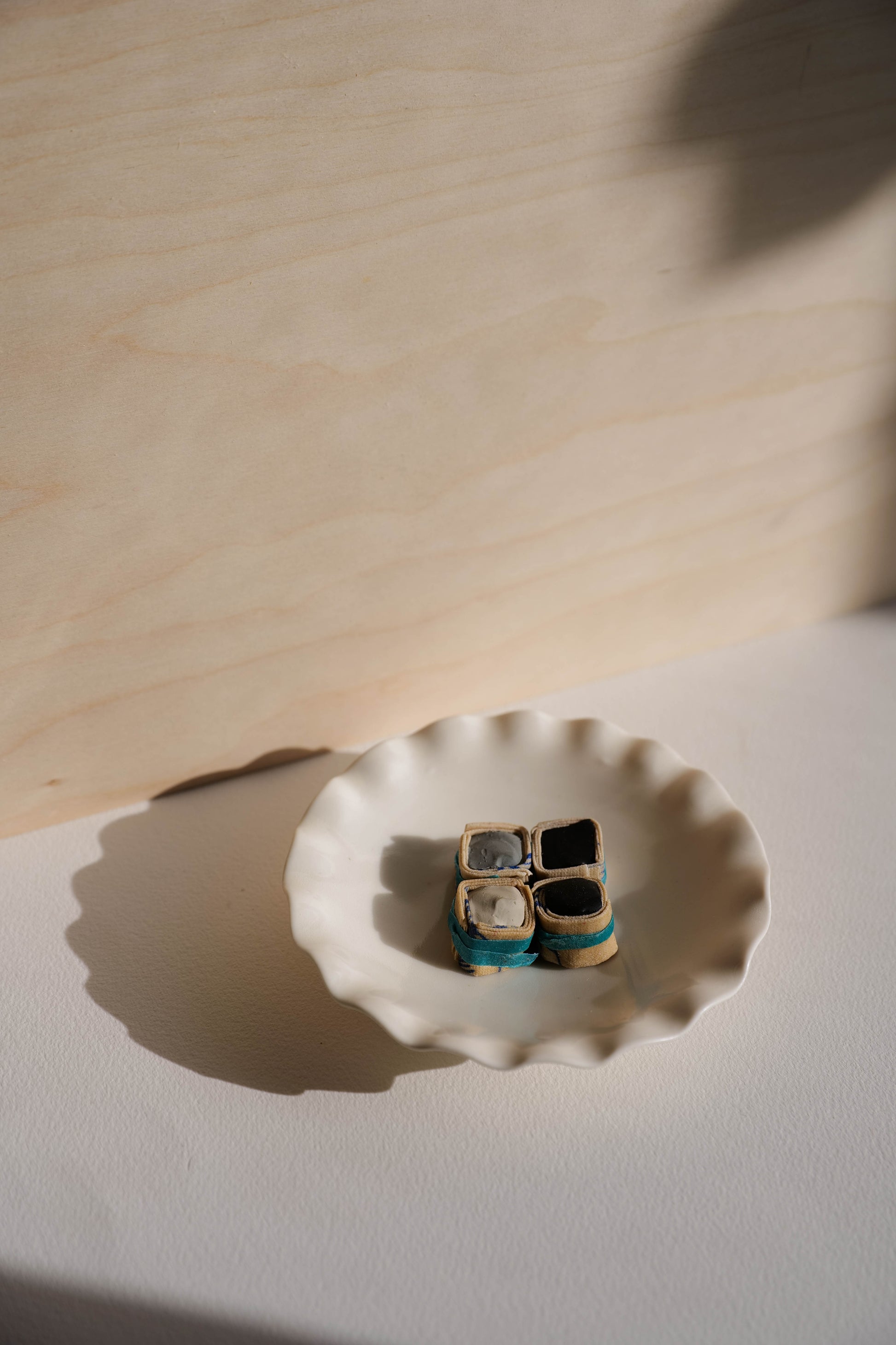 Wheel thrown porcelain catch dish with a hand-pleated rim. A delicate, versatile dish for florals, incense, snacks, jewelry, or paints. Use as it speaks to you in the moment.