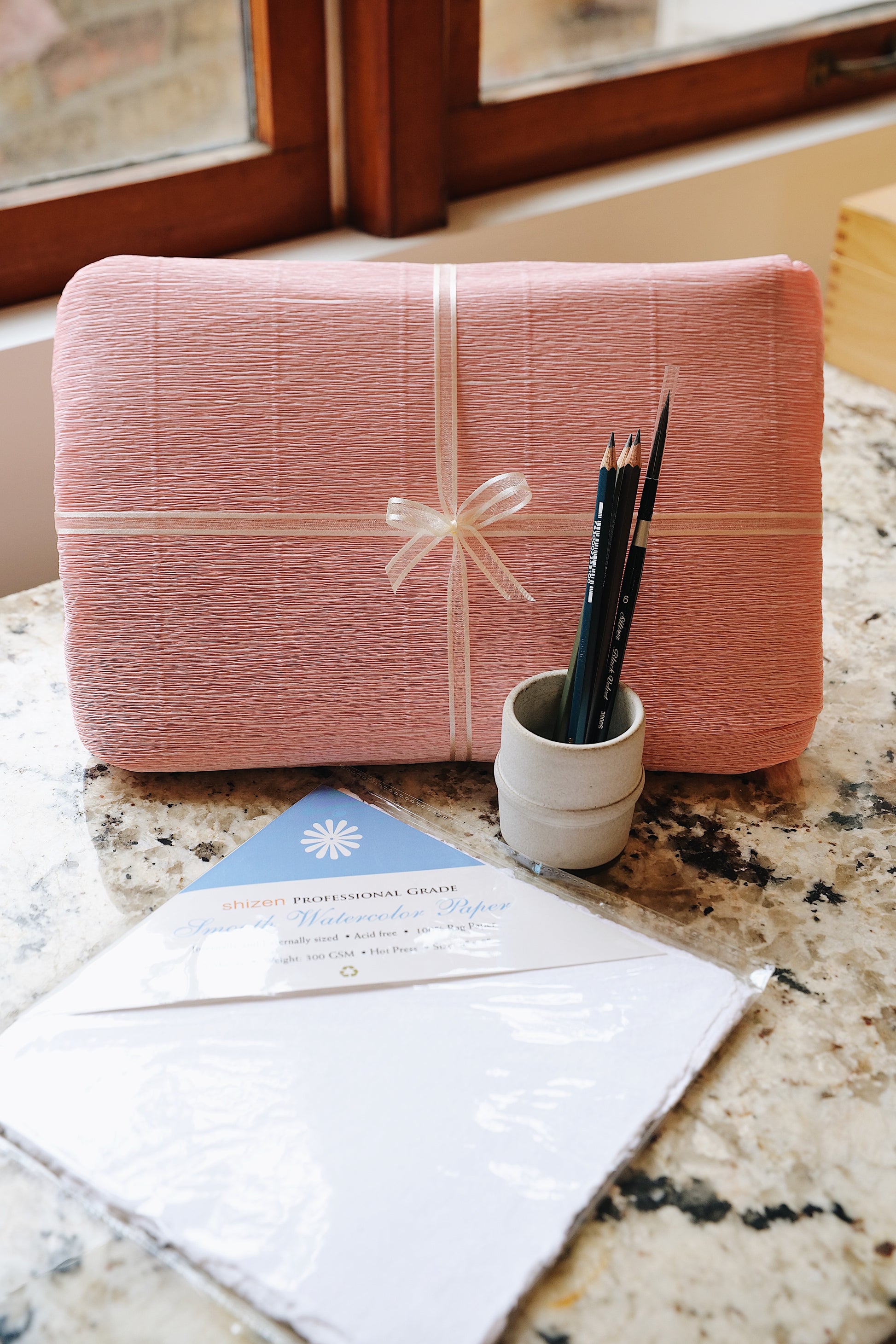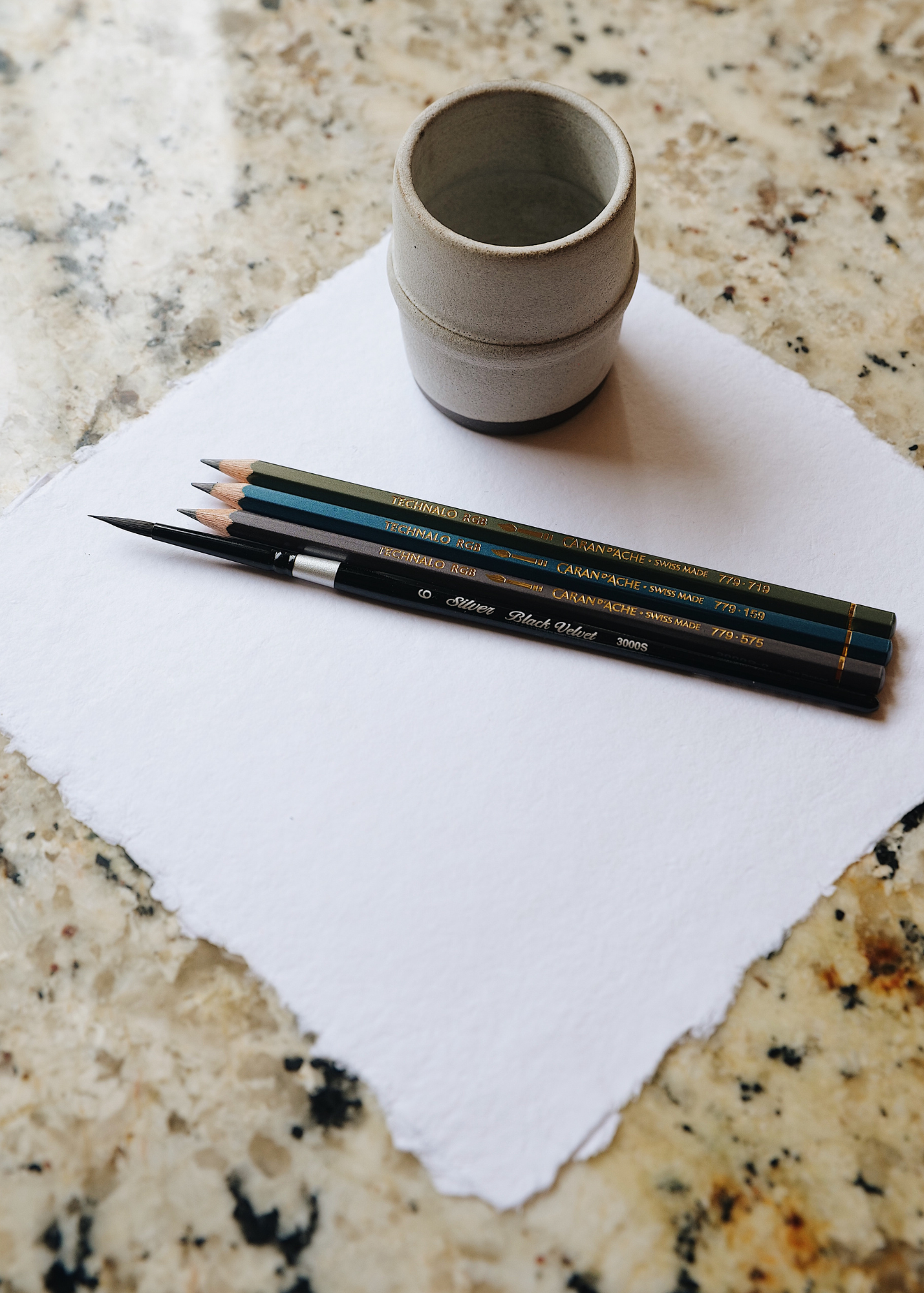 The Watercolor Pencil Bundle is meant to awaken your creativity. Technalo Water Soluble Pencils mix rich graphite with watercolor pigment, making for beautiful colored pencils with the ability to paint over to enhance the deep colors once placed on paper. Paired with a textured hot press watercolor paper, let your ideas flow through you. The Black Velvet size 6 watercolor brush is a wonderful size to add to your collection. Simply dip in water and paint over your Technalo drawing. We've also included an extra special piece, The Petite Tool Holder from our Artist Tools Collection with Grandmont Street. This cup can be used to store your pencils and brush, while also being used as a water cup while painting. This bundle comes gift wrapped.